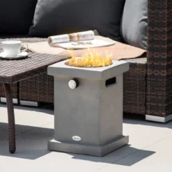 Outsunny Portable Outdoor Propane Fire Pit, Small Tabletop Fireplace, 10 Inch Square Gas Firebowl, 10,000 BTU, W/ Lava Rocks For Patio, Light Gray