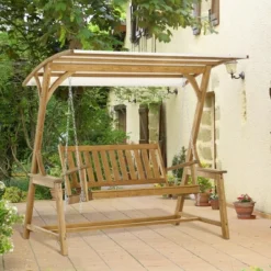 Outsunny 2 Seater Porch Swing With Canopy, Wooden Patio Swing Chair, Outdoor Swing Seat Loveseat