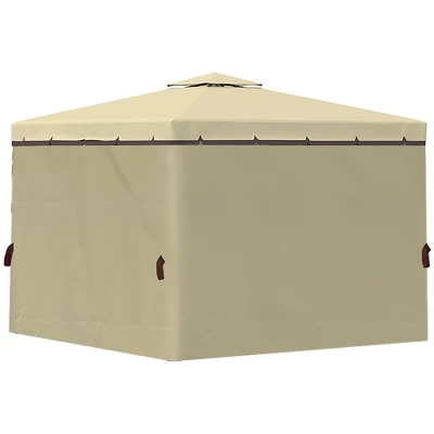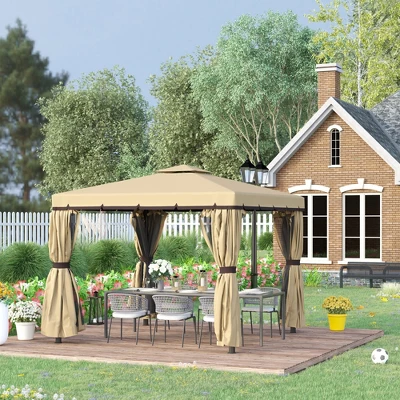 Outsunny 10′ X 10′ Patio Gazebo Outdoor Canopy Shelter With Double Tier Roof, Netting And Curtains For Garden, Lawn, Backyard And Deck