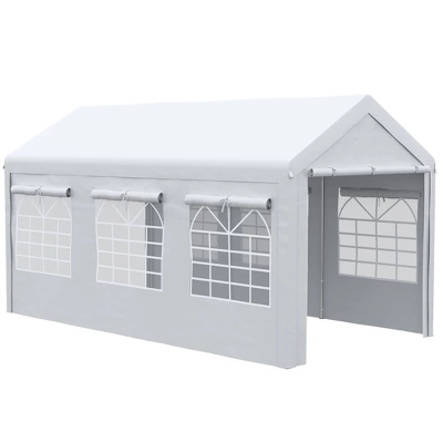 Outsunny’s large car tent/wedding tent can protect your project car and transform any outdoor area into an event space. Excellent for wedding receptions, graduation parties, or barbeques. Offering 20 x 10 feet of space, our backyard tent can stop sun damage, repel rain and decrease the dust on your vehicle. Also, its strong steel frame is galvanized to resist water and warping, and its two doors mean you can drive your car right in.