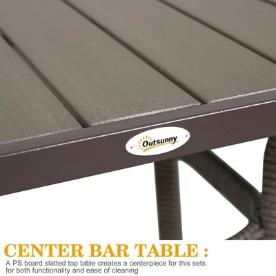 - CENTER BAR TABLE: A PS board slatted top table of this bar height patio set creates a centerpiece for these sets for both functionality and ease of cleaning.