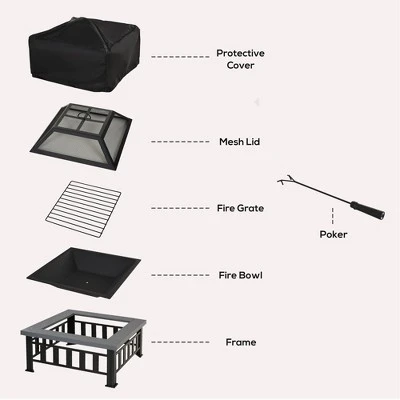 - ACCESSORIES INCLUDED: A poker, a wood log grate, a spark screen, and a water-resistant outdoor cover are included to add to your enjoyment of these fire pits outdoor wood burning.