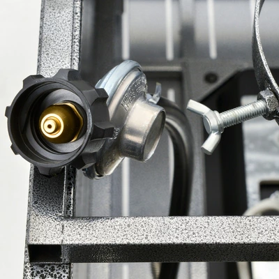 - Propane Gas Powered: Our outdoor firepit tables are powered by a standard 20 lb. LP propane tank. The propane tank connects to the burner via the bottom compartment, where it’s safe and hidden behind a door.