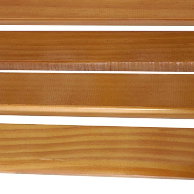 - Wood Slat Bench: An open design composed of wooden slats helps keep the seat of our outdoor bench cool, and breathable. If it rains and water gets on the seat, not a worry; it won’t saturate, and draining it is easy.