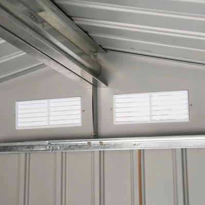 - Good Ventilation: Our metal sheds outdoor storage features four ventilation slots on the front and back, increasing both light and airflow, preventing odor, and helping to keep your equipment and tools dry. The double sliding doors allow easy access to this backyard shed.