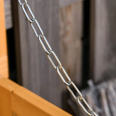 - GREAT DESIGN: The small gaps at the bottom of the wood storage bin provide ventilation and help prevent rainwater from accumulating. Includes two chains connected to the top to keep the lid in place while opened.