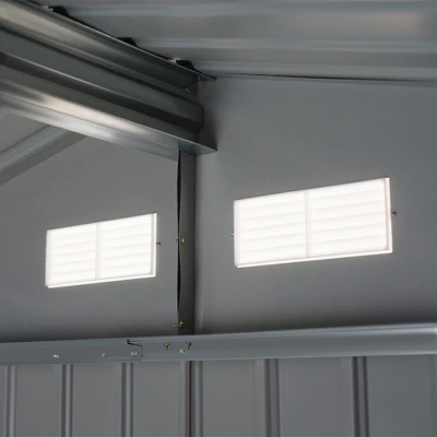 - Good Ventilation: Our metal sheds outdoor storage features four ventilation slots on the front and back, increasing both light and airflow, preventing odor, and helping to keep your equipment and tools dry. The double sliding doors allow easy access to this backyard shed.