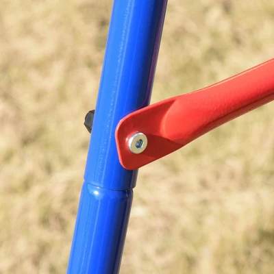 - SOLID STRUCTURE: Made with metal and a powder-coating finish, this children’s swing is rust-resistant. The A-shape frame and foot pads offer a solid structure.