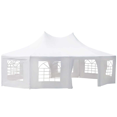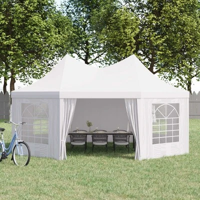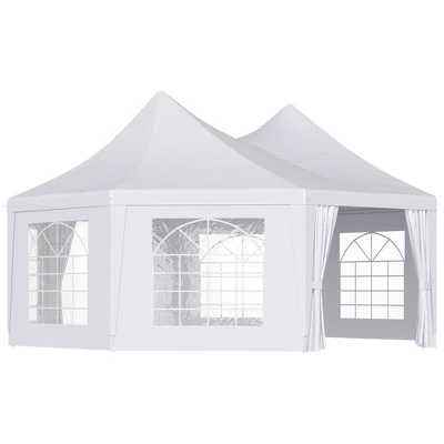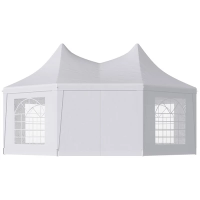 This Outsunny 10-Panel temporary party and event canopy tent is a great way to provide a stylish, elegant shade option for large groups of people attending an outdoor event. Designed with large PVC church windows and a unique high peaked roof, this massive party tent is perfect for wedding receptions, events, picnics, flea markets, or any other outdoor special occasion. Check out this unique canopy tent from Outsunny, and get the party started.