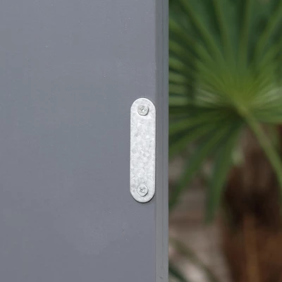 - PROTECTED TOP: A sheet of galvanized metal on top of this storage cabinet resists rust to keep it in excellent condition, even when it rains. The top protects what’s inside from getting wet, and the rain slides off the ground.
