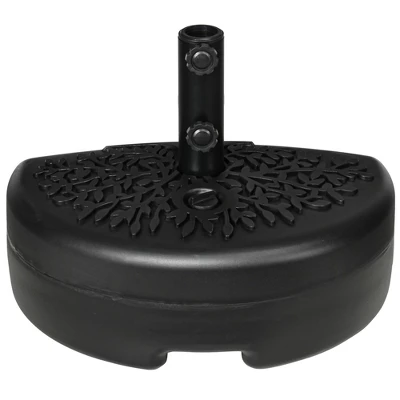 - FILLABLE UMBRELLA BASE: Our half umbrella stand can hold 40 lbs. of water or 46 lbs. of sand. You can also fill with dry sand and then add water to increase the weight. It features a filling port for easy use and cleaning.