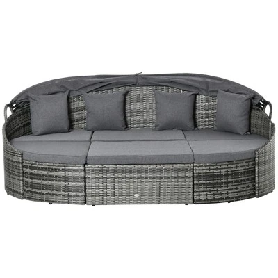 - Round Sunbed: A daybed with extra-deep, low seating; lay back on your lawn, patio, or place it on your porch. Featuring four throw pillows and thick cushions you can use for your back or head sitting or lying, apply a modern solution to your outside situation.