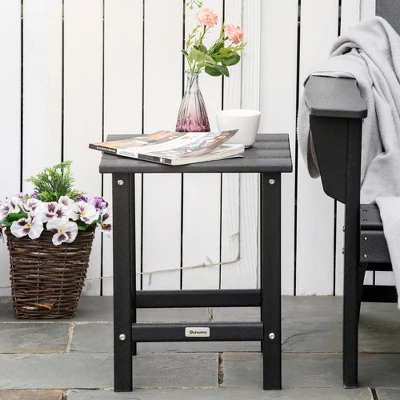 Outsunny’s outdoor end table is an excellent match for an Adirondack. Add a surface to your sitting space; a side table gives you a place for your phone, book, drinks, snacks, or potted plants. Whether you need a place for your morning cup of joe or an evening nightcap, you can sit back and enjoy the outdoors even more with a table by your side. Our Adirondack side table offers a classic slatted design that drains off easily and wipes clean. Get out, get comfortable, get Outsunny.