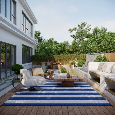 - Stake It In Place: This outdoor-ready rug comes equipped with four corner loop straps; stake them in place so you can make sure the rug withstands the wind.