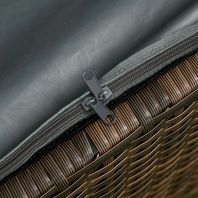 - Stable & Durable: The wood-like top and aluminum frame of our patio bench bear a large weight capacity, and the hand-woven PE rattan wicker helps fight against moisture and fading. This outdoor storage bench also features a zippered PU-coated polyester liner to protect items such as toys, sports equipment, and gardening tools from water and weather.