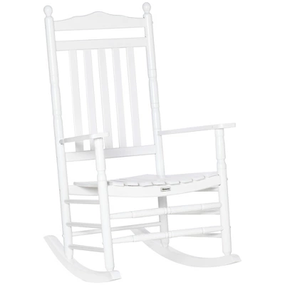 Rock back and forth in the warm afternoon sun with patio rocking chairs from Outsunny. Comfort meets quality with this outdoor rocking chair. The chair features a solid and natural wood for a stable structure and a wide, ergonomic seat that supports the body to provide the ultimate lounging experience. The paint finish is UV resistant and won’t fade quickly. Enjoy a relaxing day in the garden, backyard, or patio with this stylish rocking lawn chair from Outsunny.
